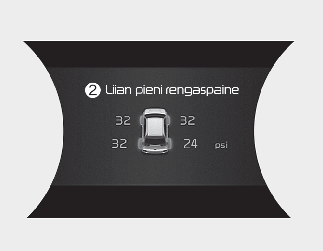 Matalan rengaspaineen sijainti ja rengaspaineen merkki (näkyy LCD-näytöllä)