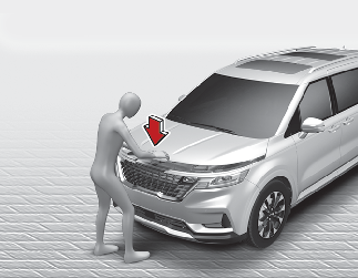 • قم دائمًا بإعادة الفحص للتأكد من غلق غطاء المحرك بإحكام قبل القيادة. إذا لم يكن مغلقًا، فقد يتم فتحه أثناء قيادة السيارة، مما يسبب انعدام الرؤية بشكل كامل، وقد ينتج عنه التعرض لحادث.