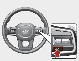 أثناء تشغيل المحرك، اضغط ضغطة قصيرة على زر المساعدة على القيادة في الحارة المرورية الموجود بعجلة القيادة لتشغيل نظام المساعدة