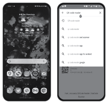 Öffnen Sie den Play Store: Nachdem Sie den QR-Code-Scanner gesucht haben, installieren Sie ihn. Öffnen Sie den QR-Code-Scanner auf Ihrem Android und richten Sie die Kamera auf den Code.