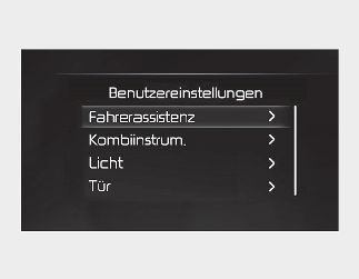 Zu Ihrer Sicherheit ändern Sie die Nutzereinstellungen erst, nachdem Sie die Feststellbremse angezogen haben.