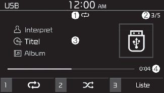 Wenn keine Betätigung innerhalb dieser fünf Sekunden erkannt wird, wird die Suche abgebrochen und auf der Anzeige erscheinen Informationen über den gerade abgespielten Titel.