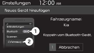 Aktivieren Sie auf dem Bluetooth-Gerät, mit dem Sie eine Verbindung herstellen wollen, Bluetooth, suchen Sie das Fahrzeugsystem und wählen Sie es aus.
