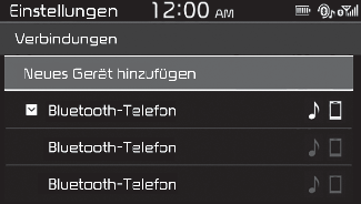 Sie können den Telefonbildschirm nicht aufrufen, wenn kein Mobiltelefon verbunden ist. Schließen Sie ein Mobiltelefon an das System an, um die Bluetooth-Telefonfunktion zu verwenden.