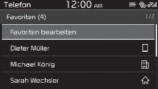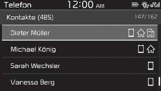 Wenn Ihr Mobiltelefon mit dem System verbunden ist, können Sie einen Anruf tätigen, indem Sie einen Namen aus Ihrer Anruferliste oder Kontakteliste auswählen.