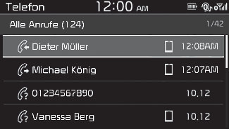 Auf die Anrufliste wird nur zugegriffen, wenn das Mobiltelefon mit dem System verbunden ist.