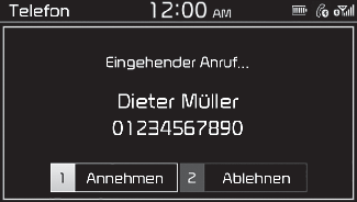 Wenn die Anrufinformationen in Ihrer Kontaktliste gespeichert sind, werden Name und Telefonnummer des Anrufers angezeigt. Wenn die Anruferinformationen nicht in Ihrer Kontaktliste gespeichert sind, wird nur die Telefonnummer des Anrufers angezeigt.
