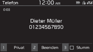 Um den Anruf auf Ihr Mobiltelefon umzuschalten, drücken Sie die Zifferntaste [1] auf dem Bedienfeld und wählen die Option Private (Privat) aus.