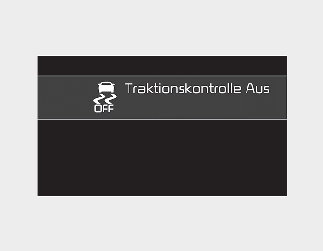 Drücken Sie die ESC OFF-Taste länger als 3 Sekunden. Die Kontrollleuchte und Meldung ESC OFF erscheinen, und es ertönt das akustische Warnsignal für ESC OFF. In diesem Zustand sind die Motorsteuerfunktion und die Bremssteuerfunktion nicht aktiv. Mit anderen Worten: Die Fahrzeugstabilitätskontrolle funktioniert nicht mehr.