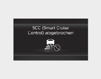 Wenn die intelligente Tempomatsteuerung vorübergehend deaktiviert ist, erscheint die Warnmeldung „Smart Cruise Control canceled“ (Intelligente Tempomatsteuerung deaktiviert) auf dem Kombiinstrument und es wird ein Warnton für den Fahrer ausgegeben.