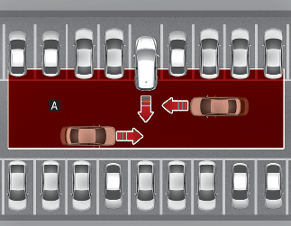 [A]: Betriebsbereich des hinteren Querverkehr-Kollisionsvermeidungsassistenten