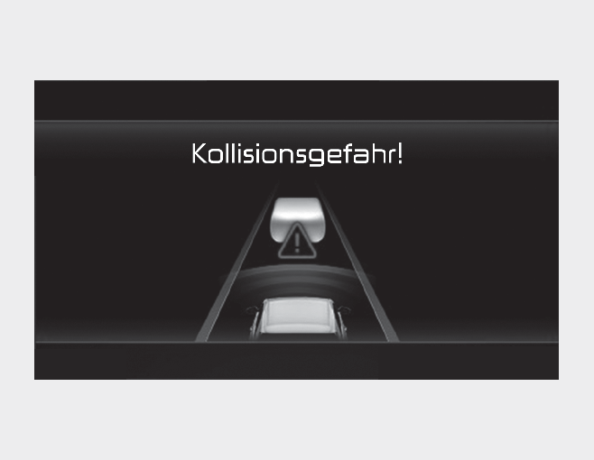 Um den Fahrer vor einer Kollision zu warnen, erscheint eine „Collision Warning“ („Kollisionsgefahr“) auf dem Kombiinstrument, ein Warnton wird ausgegeben und das Lenkrad vibriert.