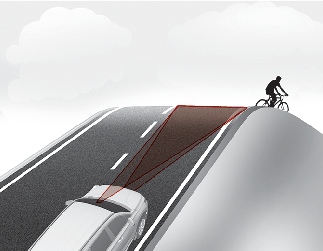Der Frontalkollisions-Vermeidungsassistent erkennt beim Bergauf- oder Bergabfahren möglicherweise ein vorausfahrendes Fahrzeug, Fußgänger oder Radfahrer nicht, was dazu führen kann, dass Sie nicht gewarnt werden und gegebenenfalls bremsen müssen.