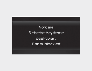 Auch wenn die Warnmeldung nicht auf dem Kombiinstrument erscheint bzw. die Warnleuchte nicht leuchtet, funktioniert der Frontalkollisions-Vermeidungsassistent möglicherweise nicht richtig.