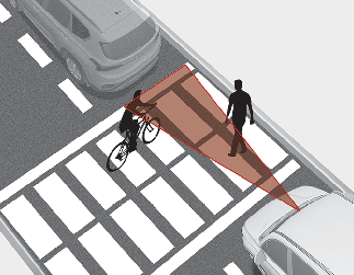 Wenn sich Fußgänger oder Radfahrer zwischen Ihnen und dem vorausfahrenden Fahrzeug befinden, funktioniert die Warnung bei Start des vorausfahrenden Fahrzeugs möglicherweise nicht richtig.