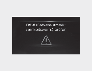 Wenn die Fahreraufmerksamkeitswarnung nicht richtig funktioniert, erscheint mehrere Sekunden lang die Warnmeldung „DAW (Fahreraufmerksamkeitswarnung)
