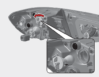 Entnehmen Sie die Glühlampe aus der Fassung, indem Sie die Glühlampe niederdrücken und gegen den Uhrzeigersinn drehen, bis ihre Rastnasen auf die Aussparungen in der Lampenfassung ausgerichtet sind.