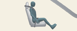 ( upright with the seatback in an upright position, centered on the seat cushion with seat belt on, legs comfortably extended