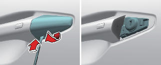 Press the lever located inside the bottom part of the cover with a key or flat-head screwdriver.