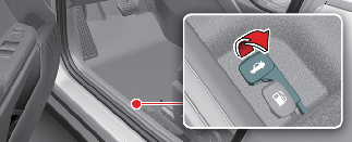 Make sure the vehicle is in P (Park) and set the parking brake.
