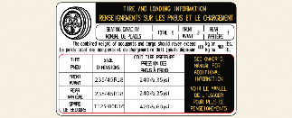 The label located on the driver's door sill gives the original tire size, cold tire pressures recommended for your vehicle, the number of people that can be in your vehicle and vehicle capacity weight.