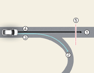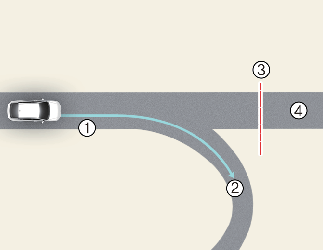 When the vehicle's driving route is recognized as the main road by maintaining the main road instead of the navigation set route, Highway Curve Zone Auto Slowdown function will operate. Depending on the distance to the curve and the current vehicle speed, vehicle deceleration may not be sufficient or may decelerate rapidly.