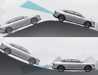 Blind-Spot Collision-Avoidance Assist may not operate properly when driving on an inclined road. The function may not detect the vehicle in the next lane or may incorrectly detect the ground or structure.