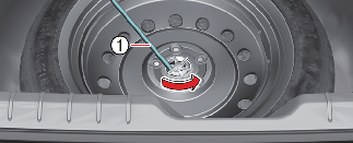 Put the jack handle (1) inside the tire hold-down wing bolt.