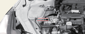 Check the coolant level. The coolant level should be filled between MAX and MIN marks on the side of the coolant reservoir when the engine room is cool.