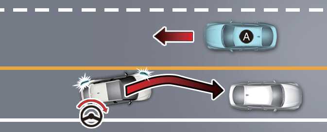 Lane-Change Side function may help avoid a collision with the vehicle ahead in the next lane when changing lanes by assisting the driver's steering.