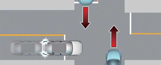 Junction Crossing function may help avoid a collision with oncoming vehicles on the left or right side when crossing an intersection by applying emergency braking.