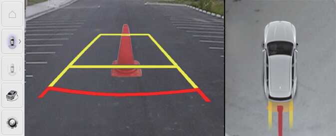 Parking distance warning is displayed on the right side of the Surround View Monitor top view screen when the Parking Distance Warning is selected.