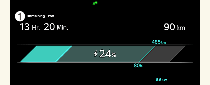 Nach dem Start des Ladevorgangs wird die voraussichtliche Ladezeit für 1 Minute im Kombiinstrument angezeigt.