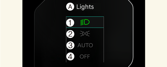 Warnanzeige für zu geringen Reifenluftdruck A: Niedriger Reifendruck |
