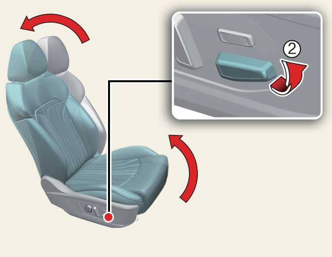 스위치를 앞쪽으로 올려서(2) 시트 등받이와 시트 쿠션을 동시에 조절할 수 있습니다.