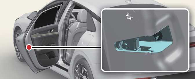 비상시 도어 잠금 방법 ODL3033010 비상시(배터리 방전 등) 일자(-) 드라이버와 같이 길고 납작한 물체를 사용하여 수동으로 도어를 잠글 수 있습니다. 도어를 여십시오. 도어의 뒤쪽에 위치한 비상 잠금 장치에 일자(-) 드라이버와 같이 길고 납작한 물체를 넣고 도어 바깥쪽 방향으로 돌리십시오. 도어를 닫으십시오.