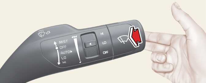 스위치를 운전자 방향으로 당기면 워셔액이 분출되면서 와이퍼가 수회 작동합니다 .