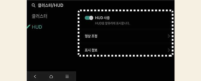 헤드업 디스플레이 기능을 켜면 헤드업 디스플레이의 영상을 조정하거나 표시 정보를 변경할 수 있습니다.