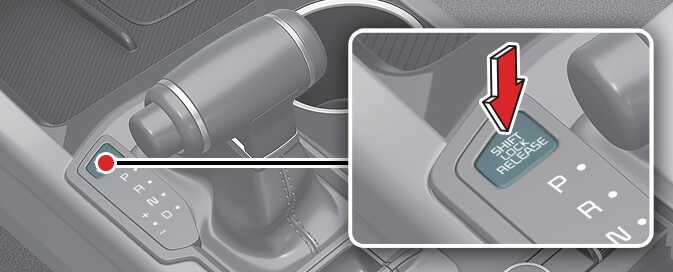 브레이크 페달을 밟고 변속 레버 앞쪽에 위치한 「SHIFT LOCK RELEASE」버튼을 누른 상태에서 변속 레버를 「N」(중립) 위치로 이동하십시오.