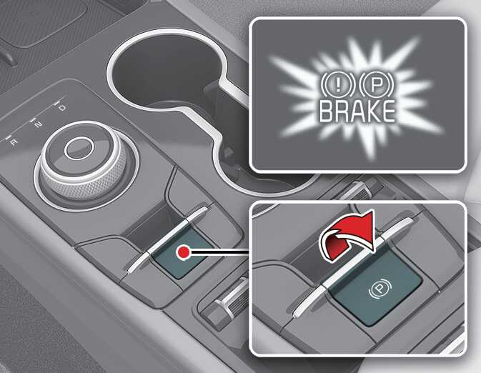 전자식 파킹 브레이크가 정상적으로 체결되면 클러스터에 브레이크 경고등이 켜집니다. 전자식 파킹 브레이크(EPB)가 작동되었는지 클러스터의 브레이크 경고등을 반드시 확인하십시오.