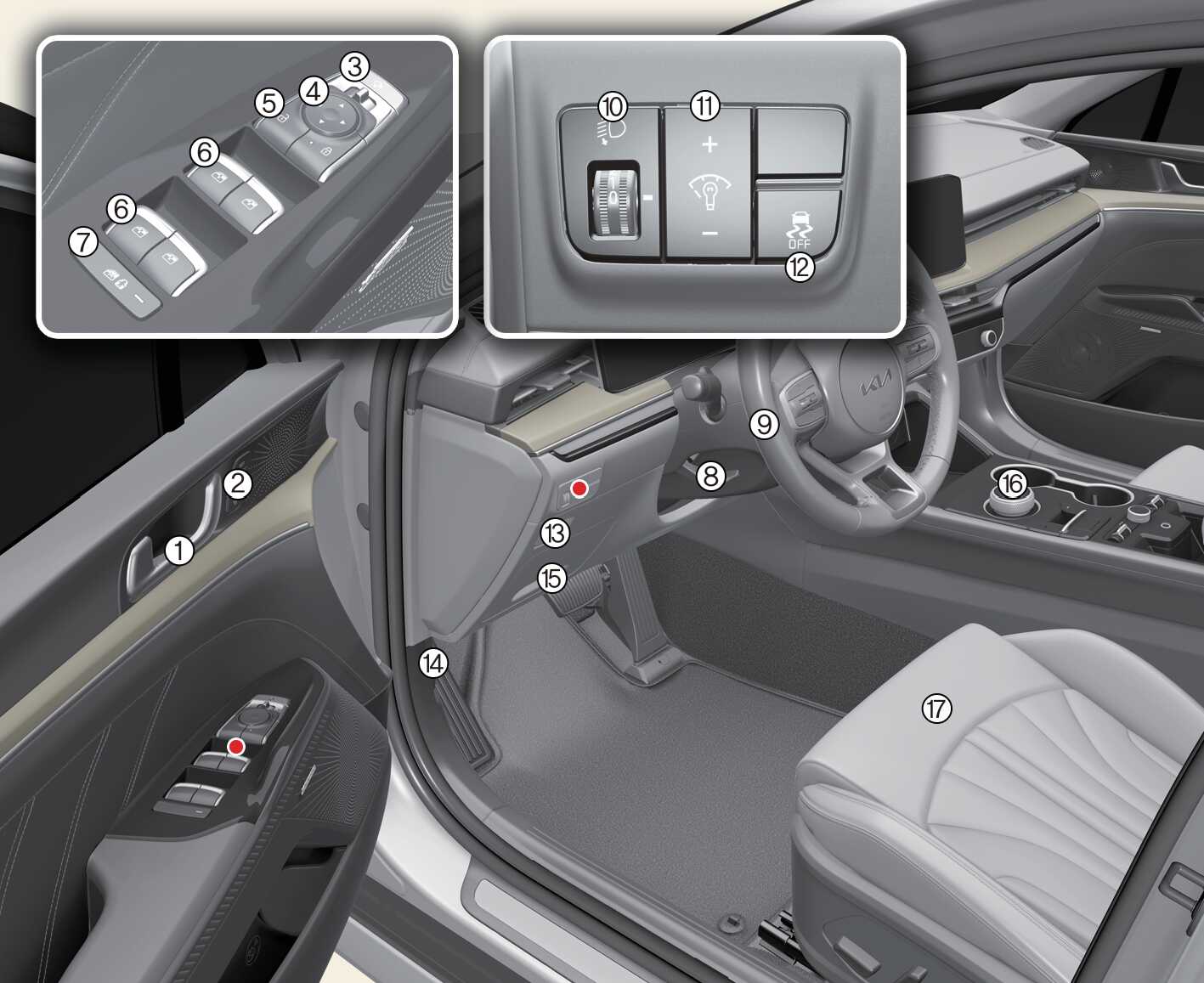 본 도안은 실제 차량과 다를 수 있습니다. (스위치의 형상 및 배열은 사양 적용에 따라 달라질 수 있습니다.)