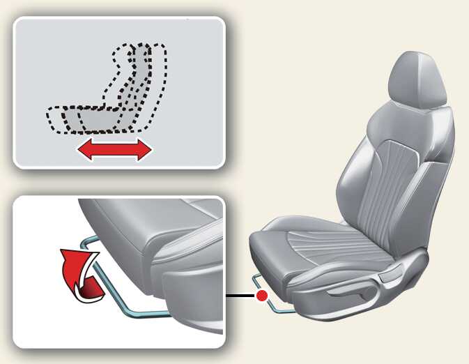좌석을 전후로 조절하십시오. 조절 레버를 놓으면 고정됩니다.