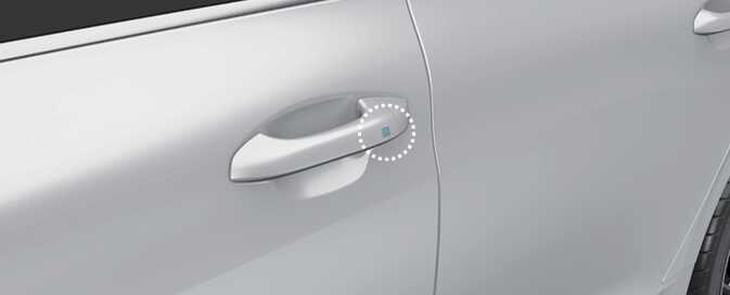(터치 센서 타입의 경우) 앞좌석 실외 도어 손잡이에 있는 음각 부분으로 된 도어 잠금 센서부를 터치하십시오.