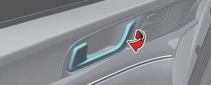 운전석 도어는 차량에 따라 도어가 잠겨 있는 경우에도 실내측 도어 손잡이를 당기면 열립니다. 운행 중 차량의 도어를 열면 매우 위험하므로 도어를 열지 마십시오.