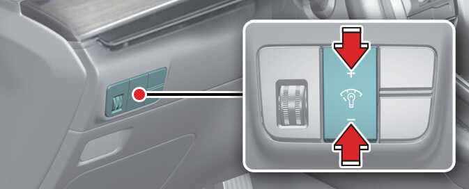 클러스터 조명 조절 조명 스위치 미등 이상 또는 시동 「ON」 이상에서 클러스터 조명 밝기 조절 스위치를 위쪽 또는 아래 쪽으로 눌러 클러스터 조명의 밝기를 조절할 수 있습니다. ODL3033041