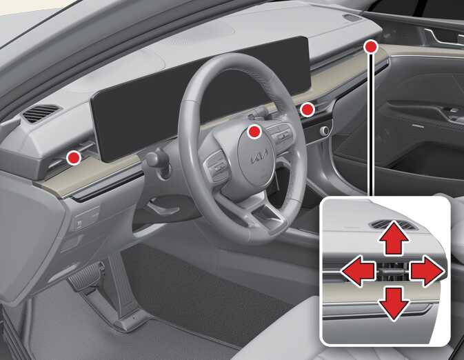 송풍구로 나오는 바람을 상하좌우 원하는 방향으로 조절하십시오.