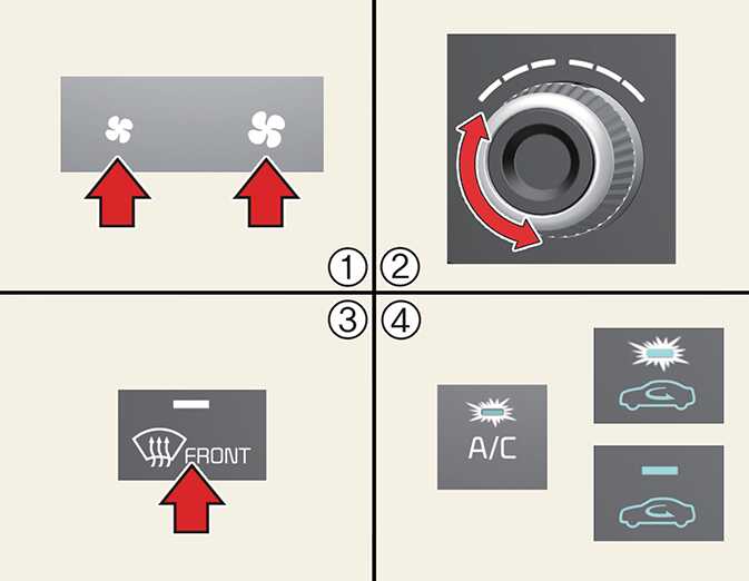 외기 유입이 자동으로 선택되며 외부 온도에 따라 에어컨도 자동으로 작동합니다(유리창 습기 방지 기능이 설정된 경우). 외기 유입 및 에어컨이 자동으로 선택되지 않을 경우에는 해당 버튼을 눌러 작동하십시오.