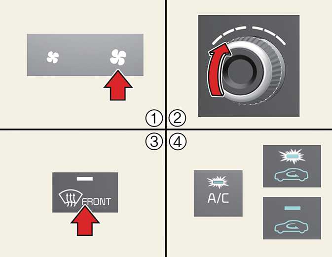 앞유리 서리 제거 버튼을 누르십시오.