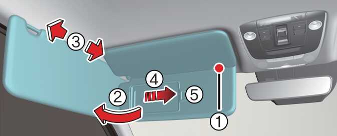 운전석 선바이저 안쪽에는 고속도로 통행권 등을 끼울 수 있는 티켓 홀더(5)가 있습니다.