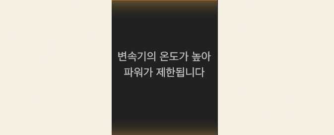 변속기 과열 경고 메시지가 나타나도 계속 가혹 주행하면 해당 메시지가 나타납니다. 이때 자체 보호 모드에 의해 파워가 제한됩니다.